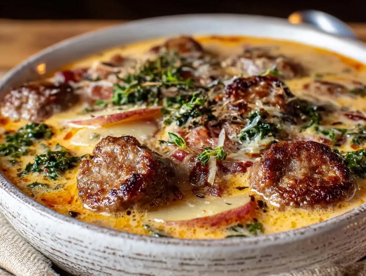 A hearty and comforting Olive Garden Zuppa Toscana soup featuring spicy Italian sausage, kale, and creamy potatoes simmered to perfection. Perfect for cozy dinners and crowd-pleasing family meals.