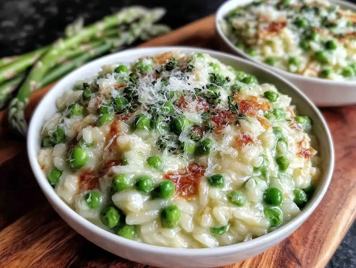 Creamy Spring Pea Risotto with Browned Butter Parmesan