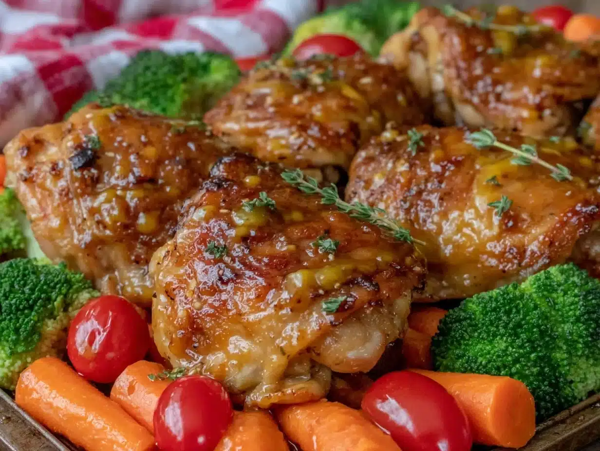 Keywords: honey mustard chicken, sheet pan chicken, crispy chicken thighs, easy dinner, weeknight meal, gluten-free, dairy-free